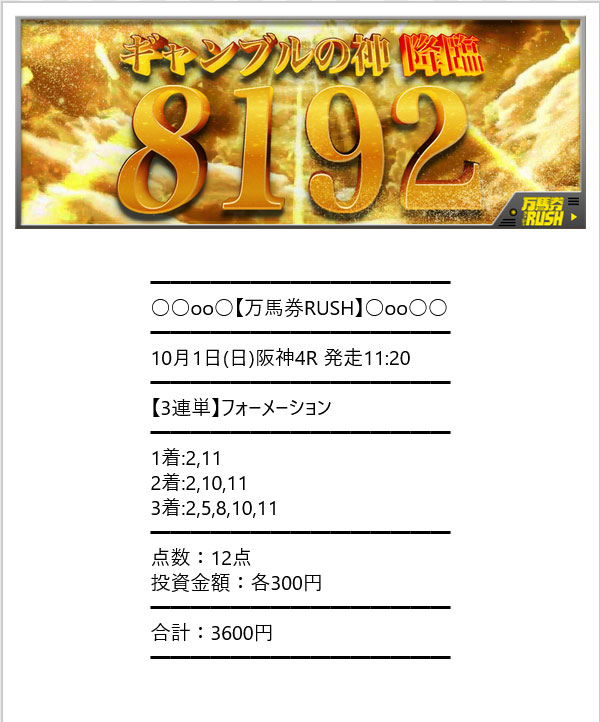 もし、どこか新サイトのご登録を探されている方はぜひ【万馬券RUSH】をオススメしたいと思います!