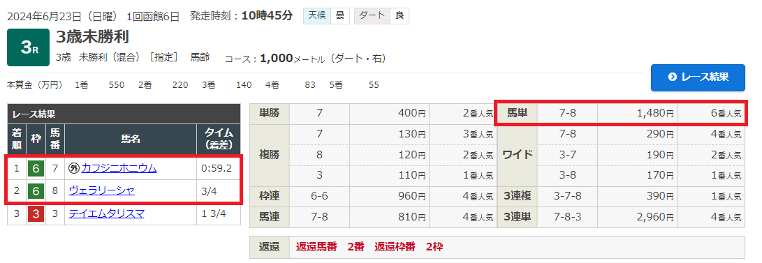 そして最後の頼みの綱である函館3Rの結果はというと…