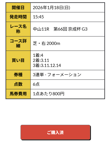 シンザン記念、フェアリーSと3連単爆荒れしてたから今回の3歳重賞戦穴狙いでいって敗北した界隈がXでめっちゃあがってたけど堅い決着だったですね。 個人的には買い目で馬券買っていたから配当付くだけ付いてくれって感じだったけど万馬券的中でした。 逆張りして穴狙いで負けるくらいなら、堅いなりにも10万越えは嬉しい。 11万5280円の払戻しとなりました。