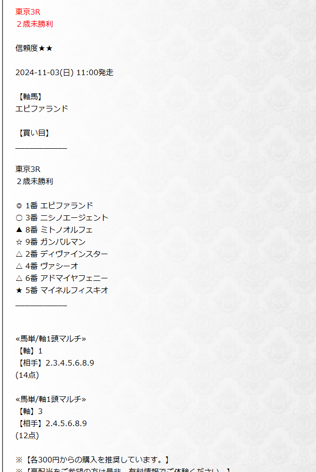 ピカイチ予想、教えます!